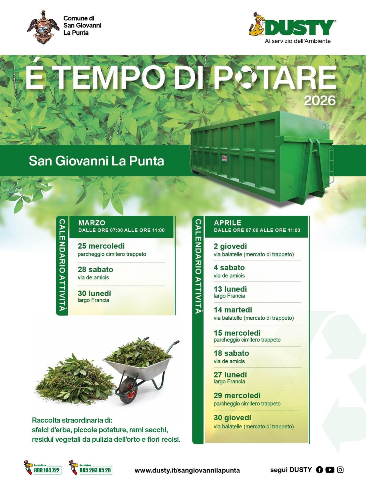 Ritornano gli appuntamenti per il conferimento degli sfalci e delle potature, 12 date tra marzo e ap...