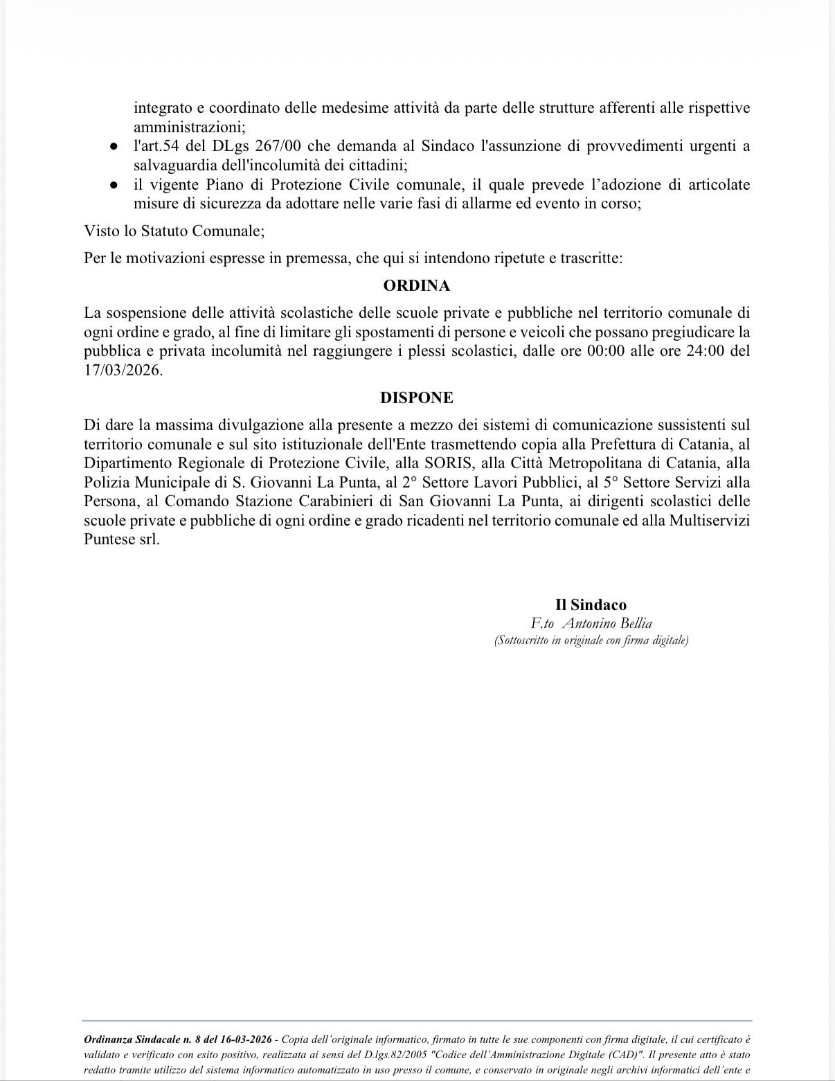 A breve sarà pubblicata sul sito istituzionale del Comune l’ordinanza sindacale